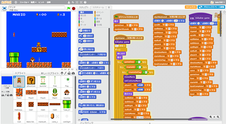 ブロックを組み合わせてゲームを作っていく形になっており、Scratchと似ていますね。
