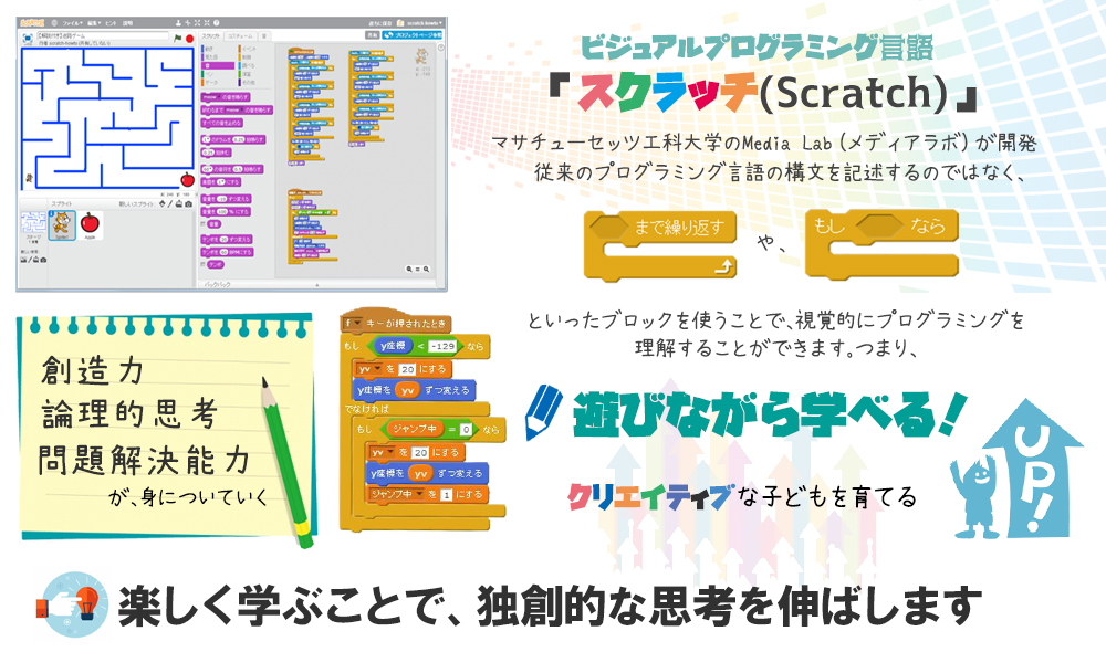Scratch(スクラッチ)は、マサチューセッツ工科大学のMedia Lab(メディアラボ)が開発した